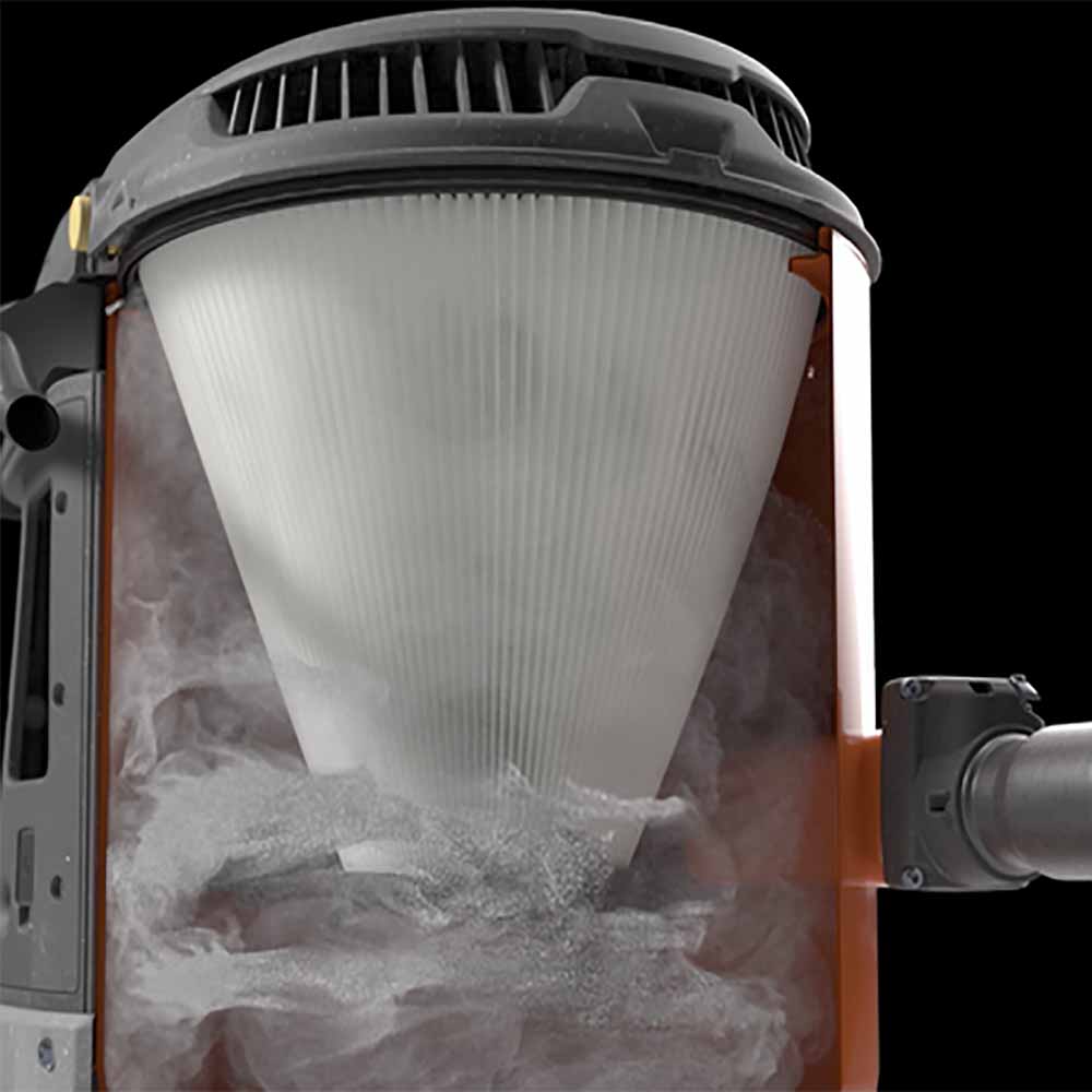 Husqvarna dust extractors deliver maximum airflow only when their filters are clean—usually just for the first few minutes. After that, performance drops quickly as the filters become saturated. The resulting pressure buildup reduces airflow, and once it falls too low, dust begins to accumulate on the floor or escape into the air until you pause your work to purge the filters.