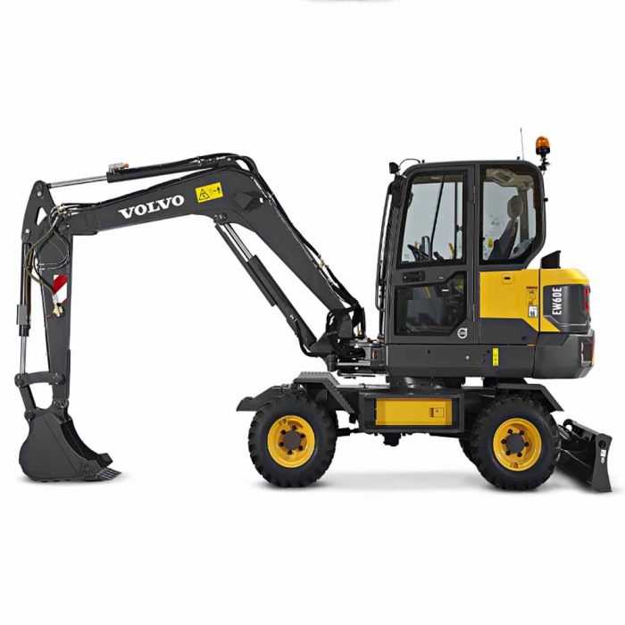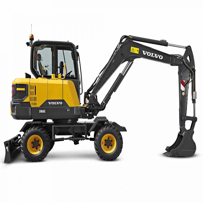 The new Volvo EW60E is latest wheeled machine launched in the E series,. The new cab is ergonomically designed with the keypad grouping all controls by the 7 inch LCD monitor with easy to use menus and the new and improved proportional joysticks providing better grip and increased ease of control. Cab visibility is enhanced with slim pillars and large glazed area’s with the 7 inch monitor also acting as the optional rear view camera screen to eliminate blind spots. Inside the cab there is a phone tray, cup holder and 3 large storage areas and a large comfortable seat making it a productive operator environment reducing fatigue. Low fuel consumption of the Stage 5 Volvo engine is aided by auto-idle whilst auto shutdown reduces running and service costs by machines clocking up hours whilst idling, the engine being perfectly matched to the hydraulic system ensuring the ultimate combination of power, performance and controllability. Ground level service access through large opening bonnets and convenient greasing points with an easy to clean cooling unit make routine maintenance easy and service intervals can be checked and reminders given by the cab LCD monitor. The heavy duty transmission and axles with four wheel drive have outstanding on/off road capability coupled with a top speed of 30km/h allowing supreme versatility and mobility allowing fast travel times between sites.