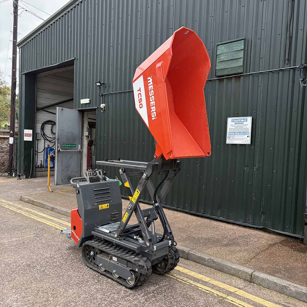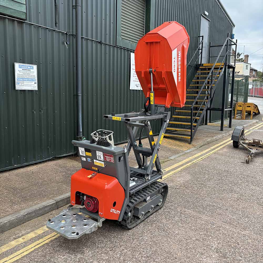 3 gear pumps Rubber tracks, foot board 2 speed travel Honda petrol engine, recoil start c/w engine canopy 500kg capacity skip loading Hourmeter 19 hrs Footboard
